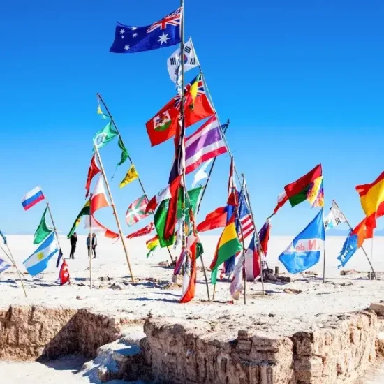 Desayuno ligero en el hotel muy temprano. Traslado al aeropuerto para abordar el vuelo domestico al impresionante Salar de Uyuni. Llegada y traslado al centro de la ciudad para iniciar el recorrido por una de las maravillas turísticas de Bolivia. Visita a Colchani mercado artesanal tiendas de artesanías de sal, tejidos de lana de llama, alpaca y apreciaremos el procesamiento artesanal de la sal. Proseguimos con visita a los Montones de sal, ojos de agua salada, monumento al Rally Dakar, Plaza de banderas del mundo. Luego, Visita al Primer Hotel de Sal, un museo restaurant, donde se realizará el almuerzo, cuando hace frio y hay viento con polvo. El almuerzo es picnic sobre salar, con manteles y almohadas de colores. Después del almuerzo visitaremos la Isla de Incahuasi con cactus gigantes, donde se realizará una caminata hasta la cima de la isla, desde donde se podrá observar el salar de Uyuni en su totalidad, ya sobre salar se podrá tomar inimaginables fotografías y filmar exclusivos y verídicos videos en perspectiva. Retornaremos sobre el salar para ver la puesta del sol en efecto espejo, retornamos al pueblo y traslado al hotel seleccionado.
