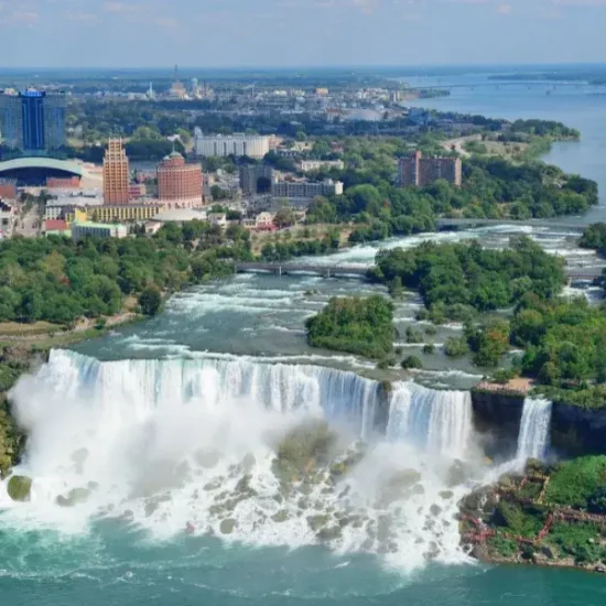 Desayuno Americano. Por la mañana completaremos la visita de las Cataratas del Niagara, donde visitaremos la represa hidroeléctrica, Parque Niagara y el Lago Ontario. A la hora indicada salida hacia la ciudad de Nueva York donde llegaremos a últimas horas de la tarde.