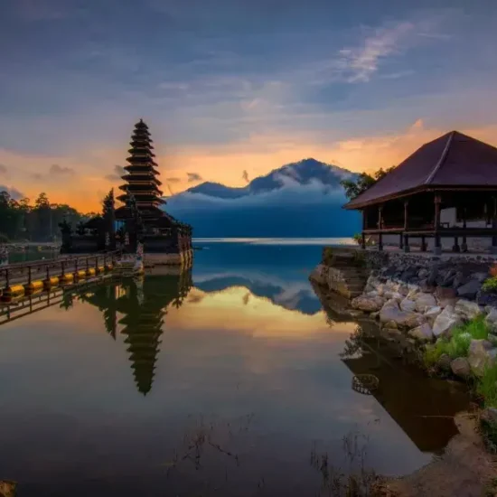 En el camino hacia el restaurante, pasaremos por Jatiluwih, un área protegida por la UNESCO donde se encuentran las terrazas de arroz más impresionantes de Bali. Tras el almuerzo, realizaremos una breve parada en el mercado local de Candikuning, donde se pueden encontrar especias tropicales, flores y frutas frescas. La última parada será en Bedugul, donde visitaremos Pura Ulun Danu Beratan, un templo situado a 1.200 metros de altitud en la meseta. Su espectacular ubicación sobre el lago y su entorno de colinas verdes crean una atmósfera única. Este templo está dedicado a Dewi Danu, la diosa del agua. Regreso al hotel por la tarde. Alojamiento.